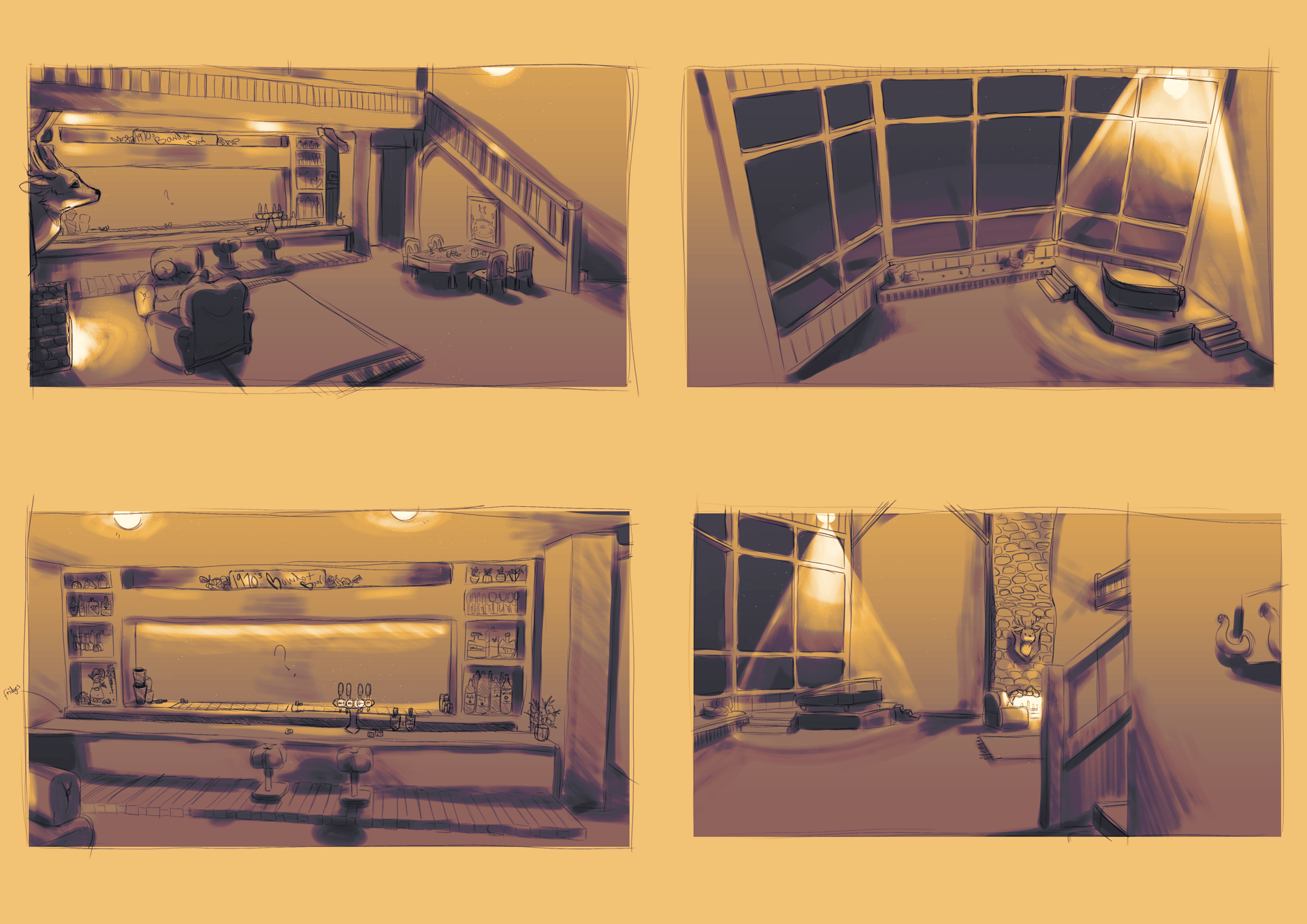 This early prototype environment of a ski lodge showcases our commitment to these principles. The warm, rounded shapes of the furniture evoke a sense of comfort and nostalgia, while the earthy tones and subtle lighting add to the cozy, retro ambiance. Each design element is carefully chosen to enhance the player's connection to the setting, making the environment an integral part of the storytelling and gameplay experience.