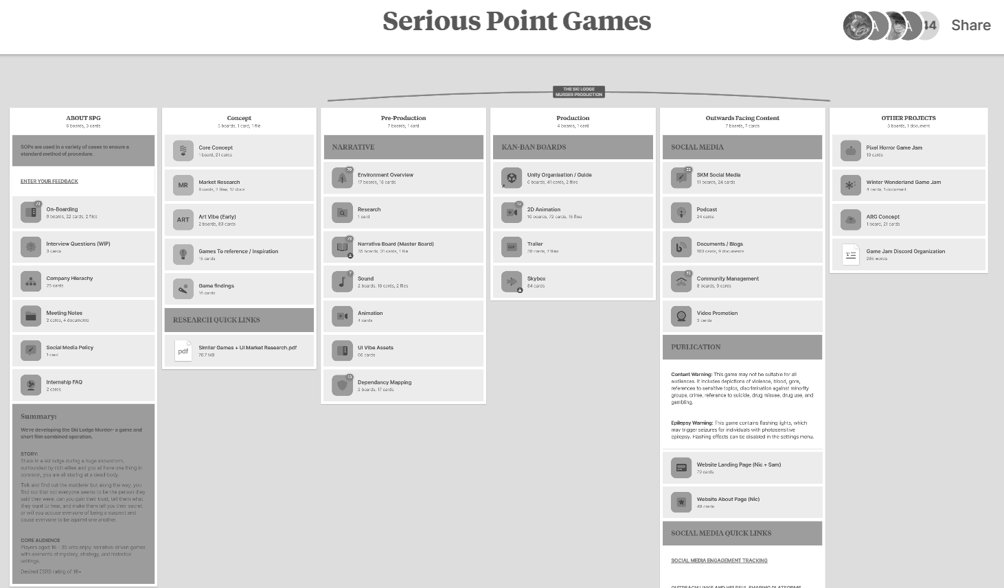 Just to be clear, not everyone actively uses the Milanote! But if anyone needs a piece of information from character and environment information to naming conventions, it's there waiting to be read!
